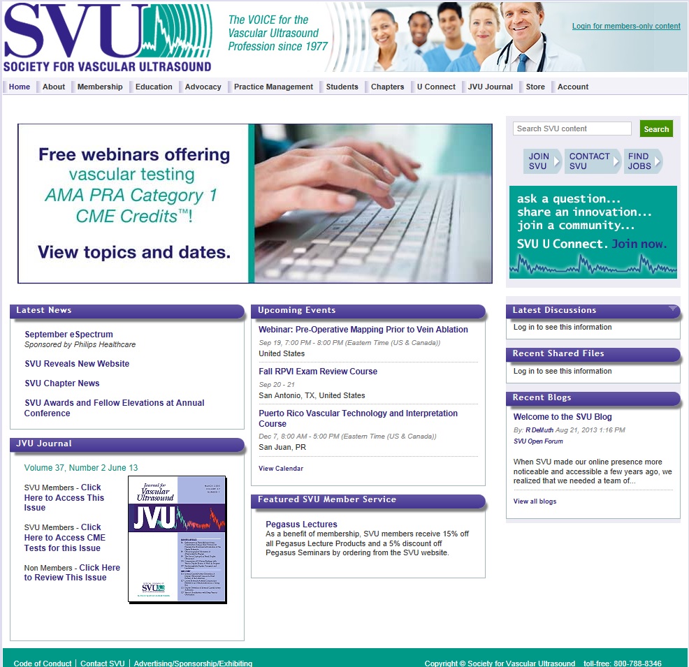 The Society for Vascular Ultrasound (SVU) offers a wide array of marketing vehicles to help promote your product or service. Reach all 5,100+ members (70% technologists, 30% physicians) through print, digital advertising, sponsorship or mailing list rental, or, showcase your product or service at our Annual Conference & Exposition, and SVU regional courses. Our advertising and exhibits team will be happy to explain the options and help you develop an effective strategy.